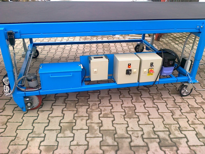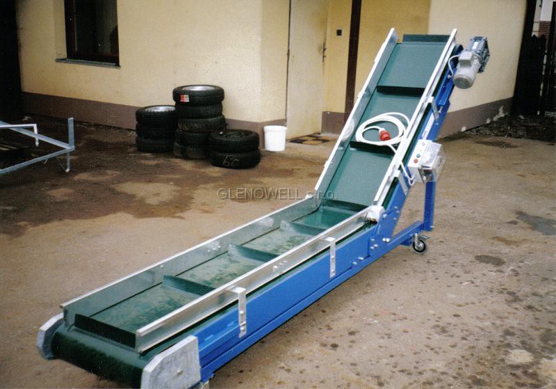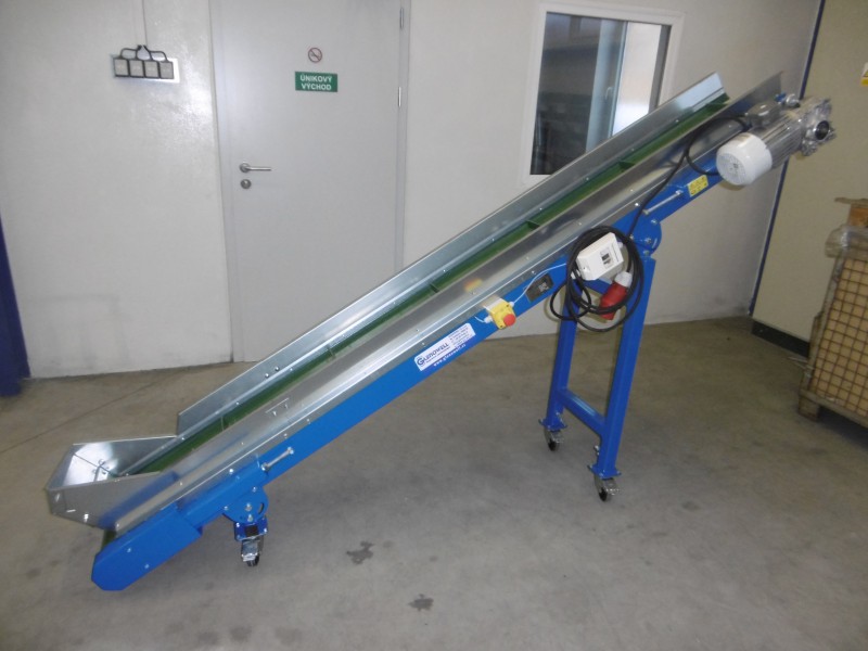 Der flache Gleitförderer gehört zu leichten und schweren glatten Förderern. Diese liefern wir in verschiedenen Größen mit einer Breite von 300 - 2.000 mm. Förderbänder können aus glattem Gummi, aus PVC hergestellt sein, mit Rechen oder Balgen versehen sein.