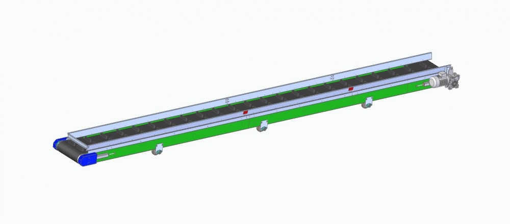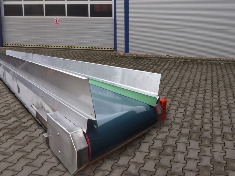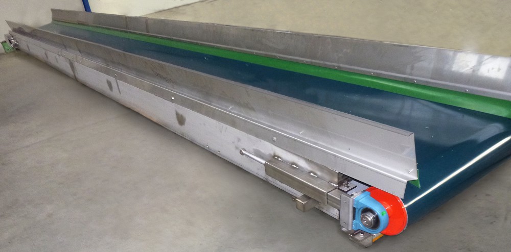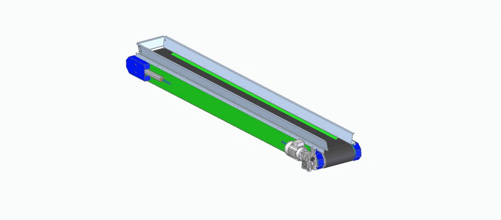 Der Gleittrogförderer gehört zu den leichten glatten Förderern. Die Breite kann sich in den Abmessungen von 300 - 2 000 mm bewegen. Der Förderer kann aus glatten PVC-Bändern gefertigt sein, mit dem rechen oder dem Faltenbalg versehen.